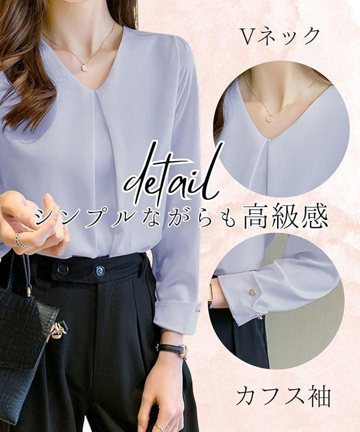 上品で大人の女性らしさを演出するVネックの長袖シャツ。