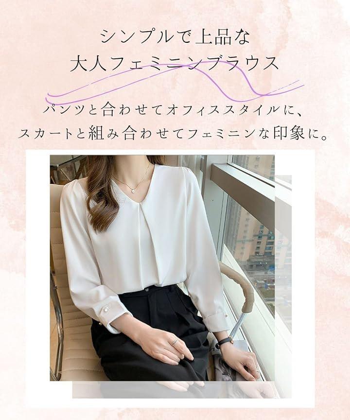上品で大人の女性らしさを演出するVネックの長袖シャツ。