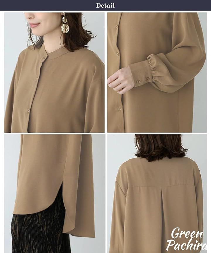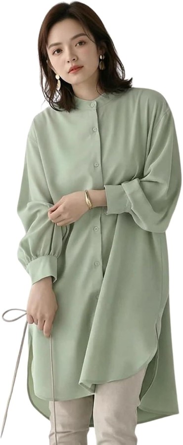 「ロングシャツとして着回し自在」前開き仕様でブラウス・チュニック・羽織りとして着用可能。