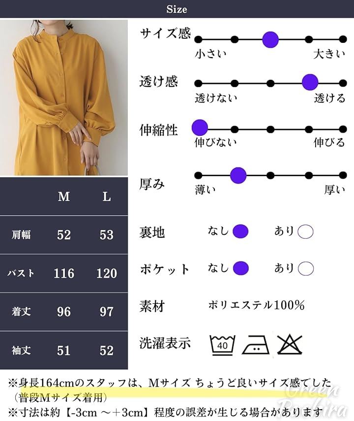 「仕様」◉素材:ポリエステル100% ◉サイズ:肩幅/バスト/着丈/袖丈 「M」52cm/116cm/96cm/51cm 「L」 53cm/120cm/97cm/52cm 全て平置きで測定しております。