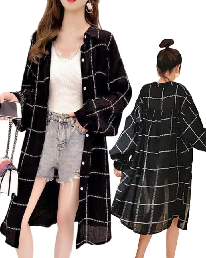 Women's long-sleeved checkered cardigan, lightweight, perfect for spring and summer