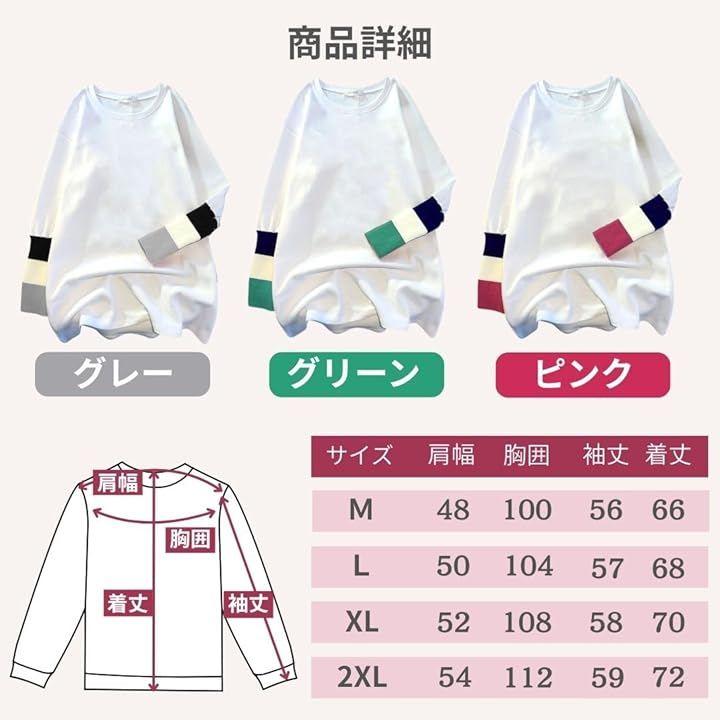 具体的なサイズ詳細として、Mサイズは肩幅48cm、胸囲100cm、袖丈56cm、着丈66cm、Lサイズは肩幅50cm、胸囲104cm、着丈68cm、袖丈57cm、XLサイズは肩幅52cm、胸囲108cm、袖丈58cm着丈70cm、2XLサイズは肩幅54cm、胸囲112cm、袖丈59cm、着丈72cmとなっており、それぞれの体型に合わせた快適なフィット感を提供します。