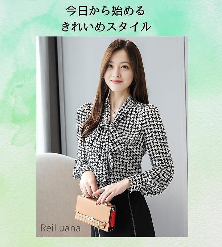 「スタイル」 通勤やオフィスシーンでは、千鳥格子柄とボウタイデザインが“きちんと感”を演出。