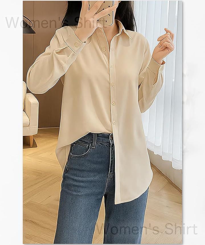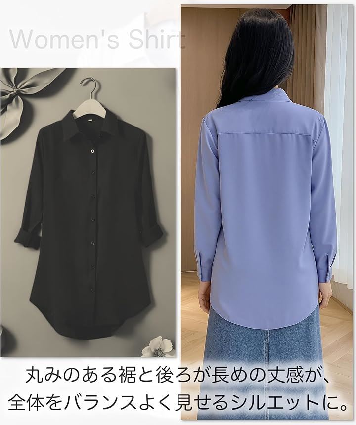 「 [ブブ オーハナ] シャツ ブラウス 長袖 無地 ロールアップ スリーブ ワイシャツ 長め ポケットレス レディース 」