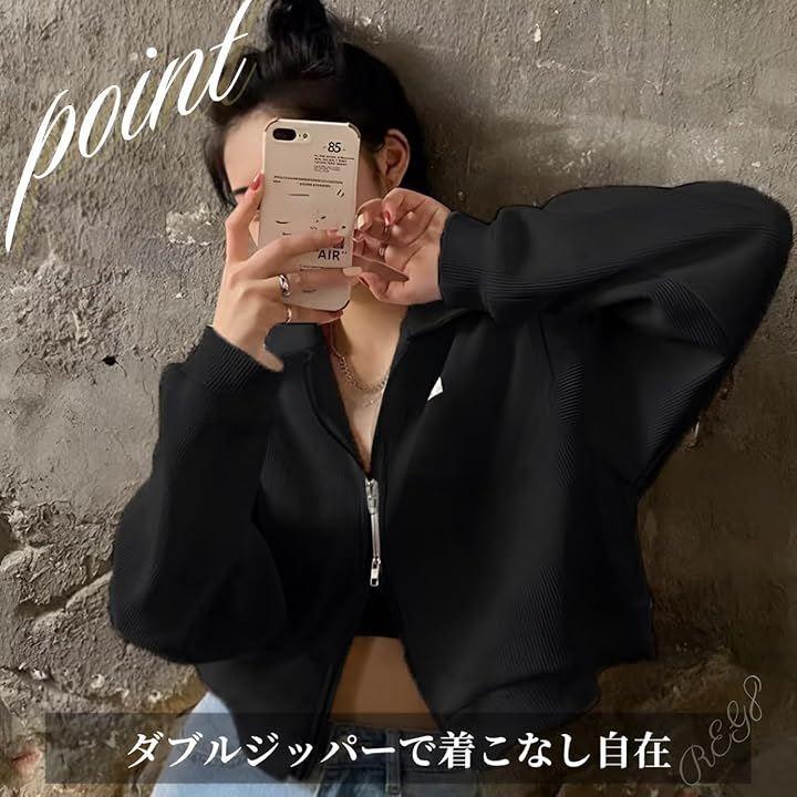 「最後に一言」 軽やかな着心地とトレンド感を兼ね備えたショート丈ジャケットトレーナーです。