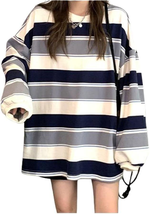 Women's long-sleeved striped loose-fitting designer T-shirt