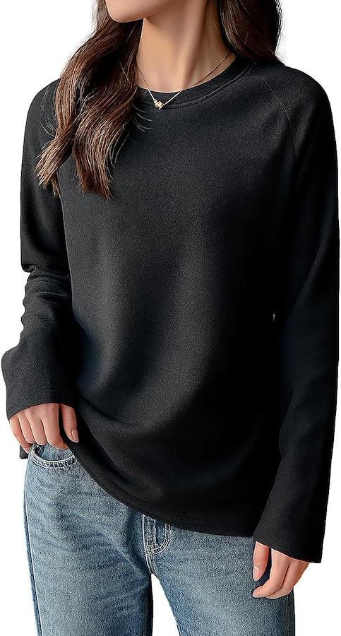 シンプルで飽きのこない無地デザインが魅力のカジュアル長袖トップス。