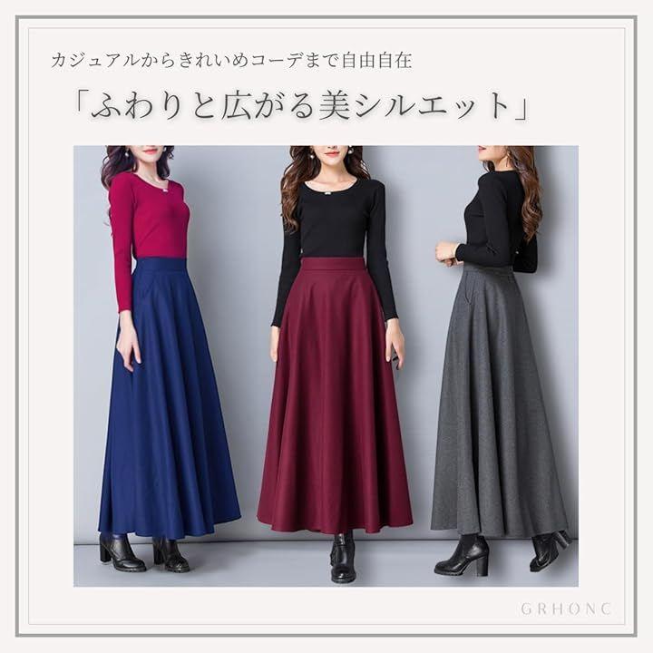 「商品特徴」美しいAラインのキレイめシルエットでありながら、フレアデザインが可愛らしさも演出するロングスカート。