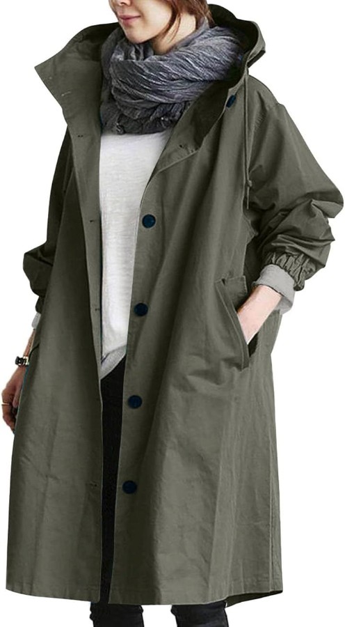 Women's Long Trench Coat, Spring, Autumn, Winter, Hooded, Lightweight, Lined, Slimming, Stylish, Casual, Warm, Loose Fit, Plus Sizes Available, Cold Weather Protection, Lightweight, Figure-Contoured