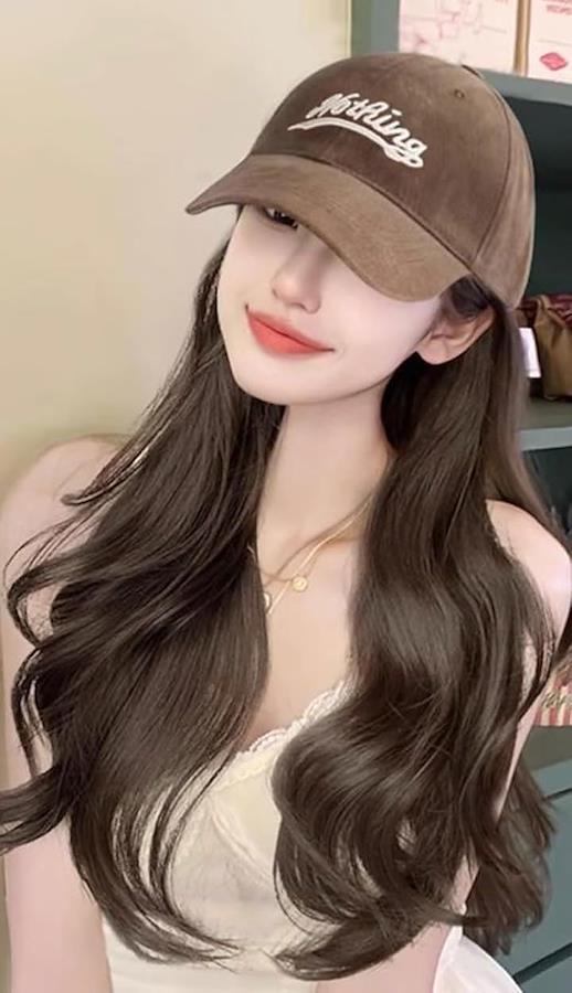 髪の長さは約53cm(帽子トップから)、約45cm(帽子の裾から)でボリューム感も抜群。