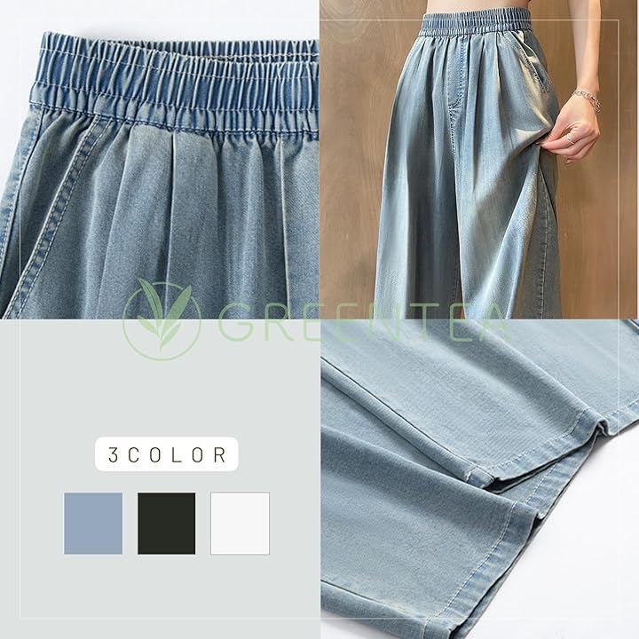 素材はデニム系素材ですが薄手で見た目以上に柔らかさがあり、着心地の良い素材です。ウエスト部分がゴムのため、ゆったり履けます。
