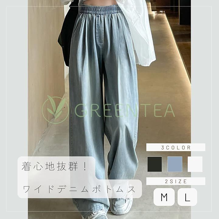 すとんと落ちたストレートシルエットできれいめに仕上げたデニムワイドパンツ。