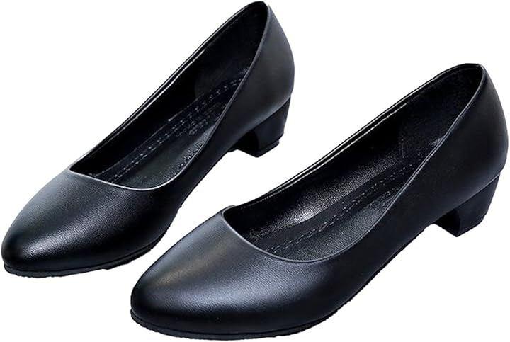 「デザイン・シルエット」 シンプルで上品なブラックローヒールパンプス。