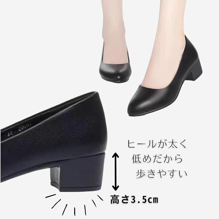 リクルート、通勤、ビジネス、フォーマル、冠婚葬祭などシーン選ばない定番の黒パンプス。