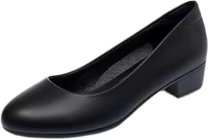 長時間の立ち仕事も疲れにくい太ヒール設計で、走れるほどの安定感と楽な履き心地。