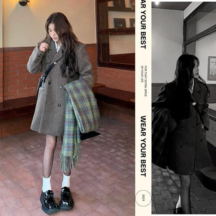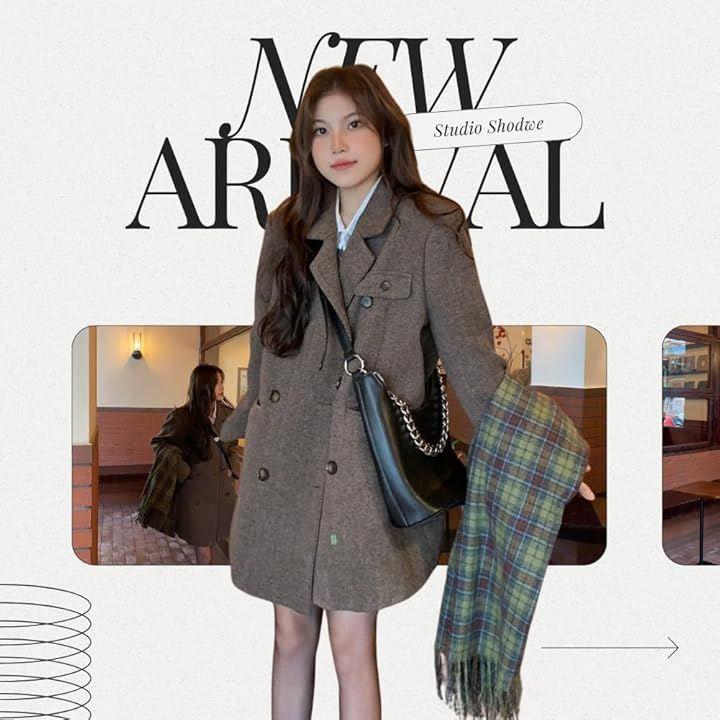 「レトロ可愛いブラウン、着回し様々」落ち着いたブラウンにダブルボタンのクラシック要素をプラス。