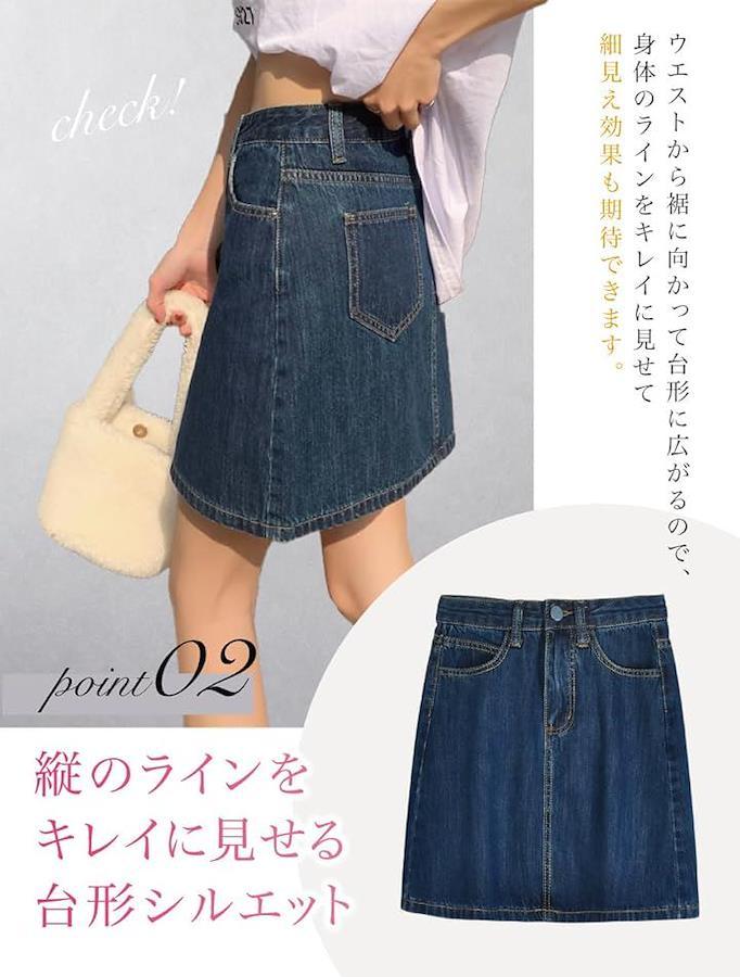 Aラインの台形カットが美脚ラインを強調し、どんなトップスとも相性抜群です。