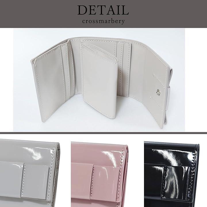 光沢感のあるエナメル素材で高見えする三つ折り財布。