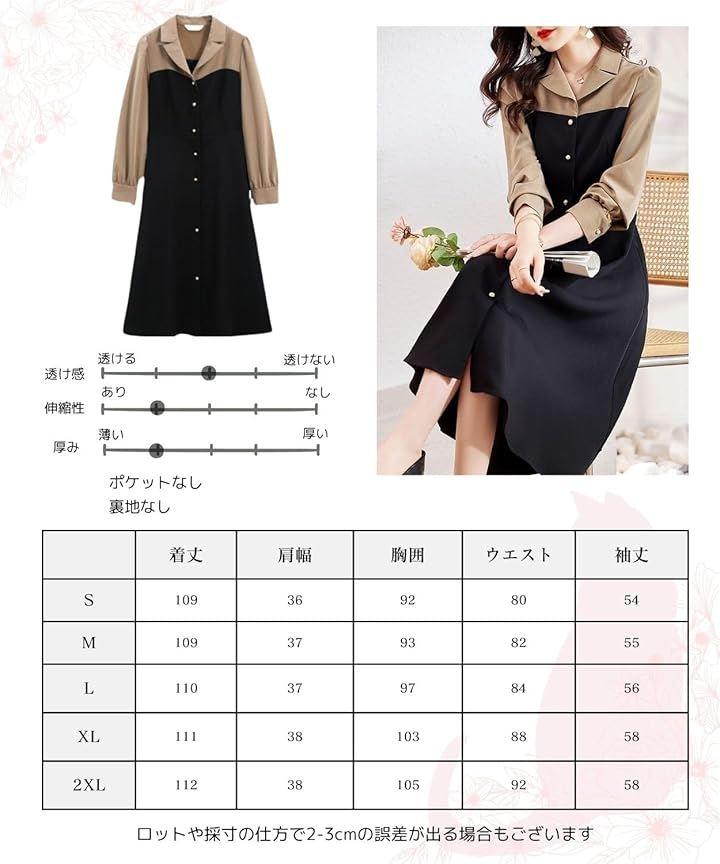 「カラー」ブラックxベージュ 「素材」ポリエステル「サイズ」S:着丈109cm 肩幅36cm バスト92cm 袖丈54cm M:着丈109cm 肩幅37cm バスト93cm 袖丈55cm L:着丈110cm 肩幅37cm バスト97cm 袖丈56cm XL:着丈111cm 肩幅38cm バスト103cm 袖丈58cm 2XL:着丈112cm 肩幅38cm バスト105cm 袖丈58cm サイズは計測方法により2~3cmの誤差が生じる場合がございます。