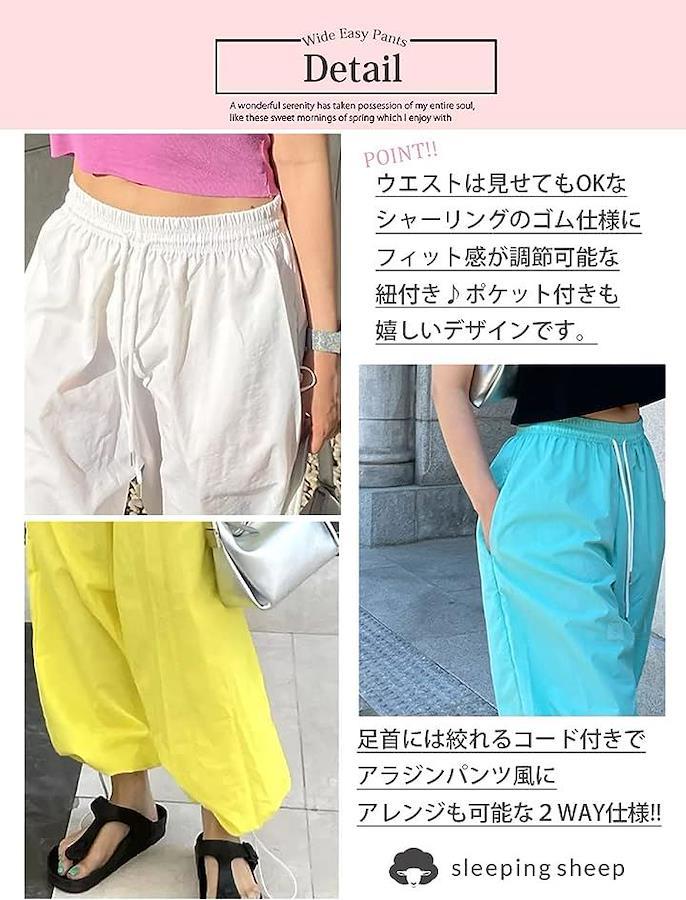 足首には絞れるコード付きで、キュッと絞ればアラジンパンツ風にアレンジも可能な2WAY仕様..アレンジも楽しめるから、スニーカーに合わせてもヒールに合わせても..