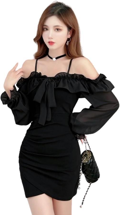 開いたデコルテとタイトなシルエットが大人セクシーなワンピース、ドレス