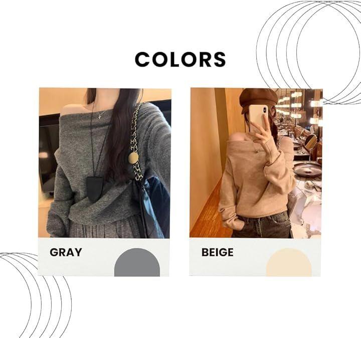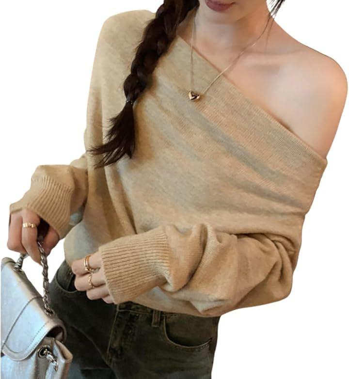 Women's Off-the-Shoulder Knit Top, One-Shoulder, Relaxed Silhouette, Shows Off Shoulders, Loose Fit, Long Sleeves, Casual, Simple, Elegant, Figure-Flattering, Perfect for Fall/Winter, Commuting, and Holidays