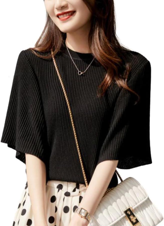 カジュアルな外出にも対応でき、春 夏 秋を通して毎日のコーディネートに取り入れやすい優秀な半袖ブラウスです。