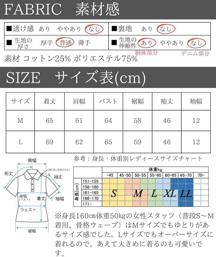 「素材」コットン25%、ポリエステル75%、袖デニム地「カラー」ホワイト(白)、グレー(灰色)「サイズ(cm)」M 着丈65/肩幅61/バスト64/裾幅58/袖丈46/袖幅12 L 着丈69/肩幅62/バスト65/裾幅59/袖丈46/袖幅12