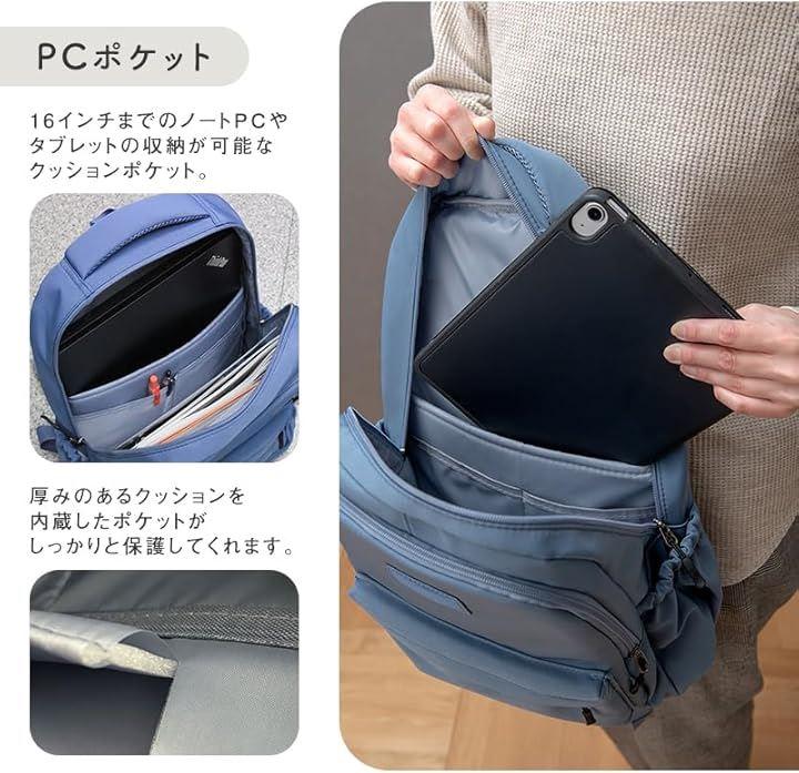 PCポケット 15インチまでのノートPCやタブレットの収納が可能なクッションポケット 厚みのあるクッションを内蔵したポケットが保護してくれます。