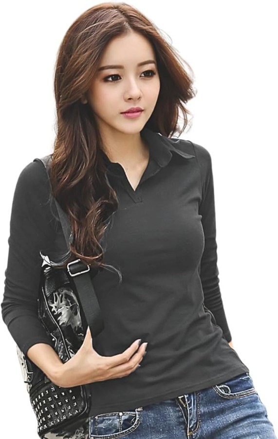 「普段使いしやすいシンプルデザイン」半袖&長袖の襟付きVネックデザインのレディーストップスです。