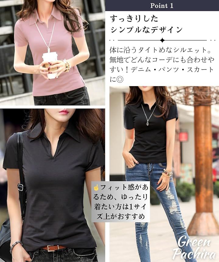 「普段使いしやすいシンプルデザイン」半袖&長袖の襟付きVネックデザインのレディーストップスです。