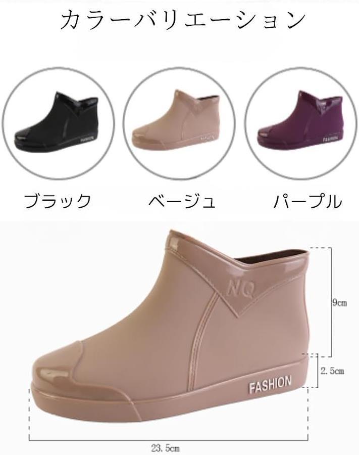 「おしゃれデザインレインシューズ」低ヒールの雨用靴は自転車通勤、通学にもおすすめのレイングッズです。