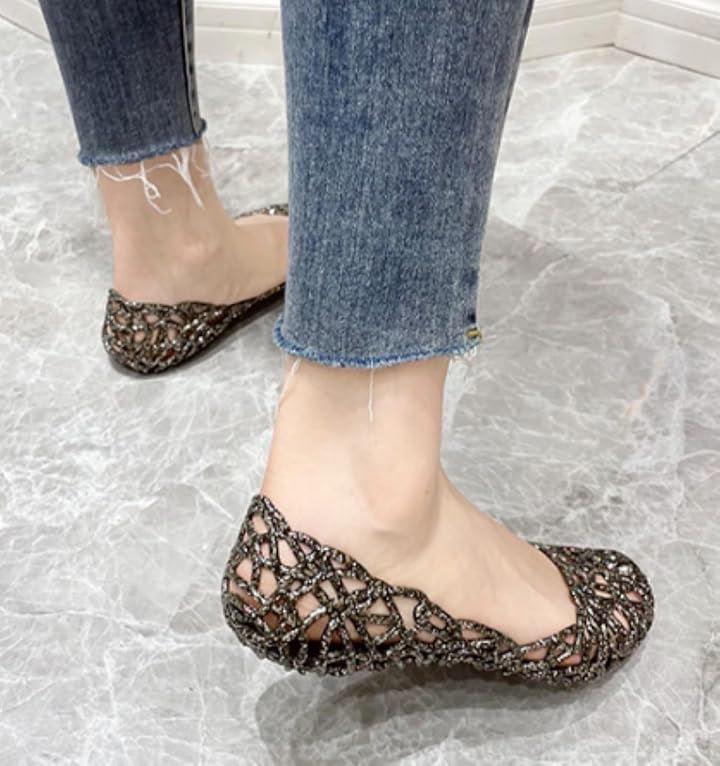 Women's rain shoes, pumps, waterproof, water-resistant, non-slip, easy to walk in, flat sandals with rubber low heels, comfortable and slip-on, won't slip off, and are comfortable to wear.