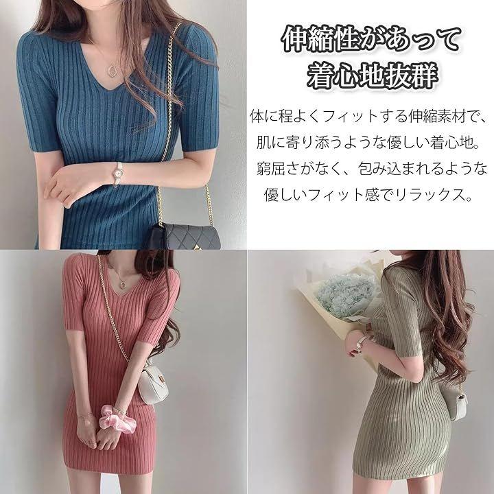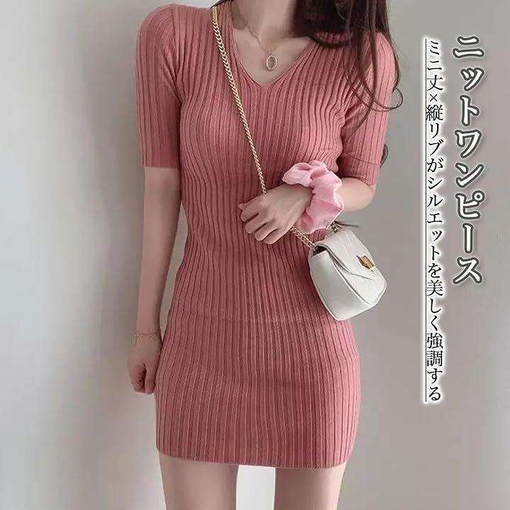 鎖骨ラインを引き立てる適度なVネックでデコルテを美しく引き立て、ミニ丈x縦リブがIラインのシルエットを美しく強調するワンピースです。