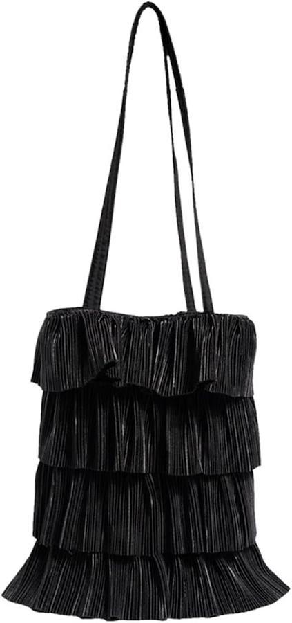 光沢感のあるフリルが高級感を演出し、キレイめからカジュアルまで幅広いコーデに映える、周りと差がつく主役級バッグです。