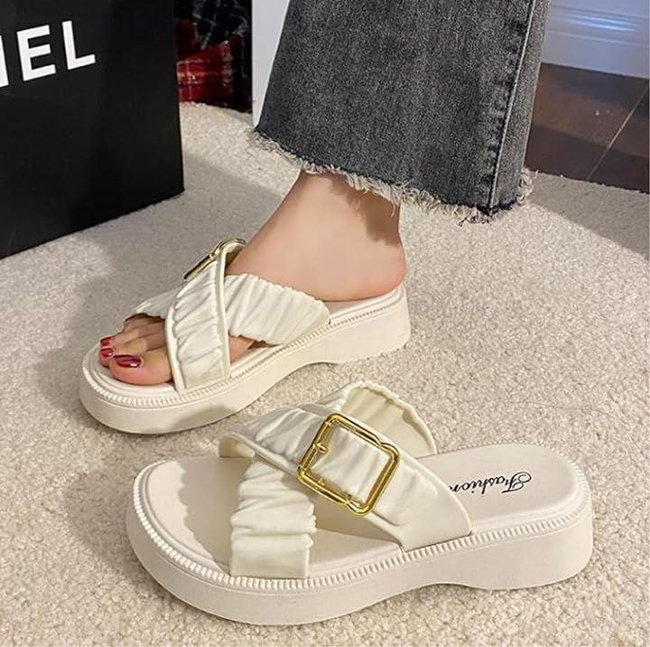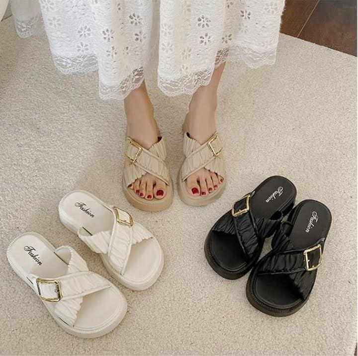 Women's Sandals, Thick Sole, Round Toe, Simple, Slide Sandals, Cute, Comfortable, Basic, Easy to Walk in, Easy to Wear, Beautiful Legs, Commuting, School, Travel, SDL007, 25.0 cm