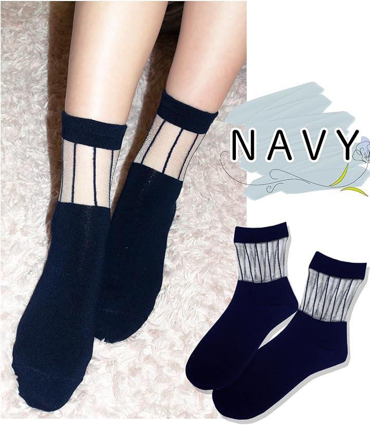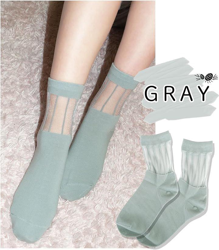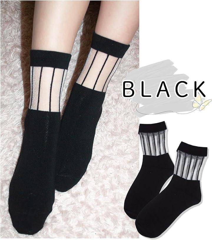 Women's see-through socks, striped crew length, sheer, customizable, 2-pair set in 2 colors. Cute, sheer cotton and mesh socks. Thin, stay-put, and comfortable. A stylish gift for adults. Stylish and stylish sheer socks.