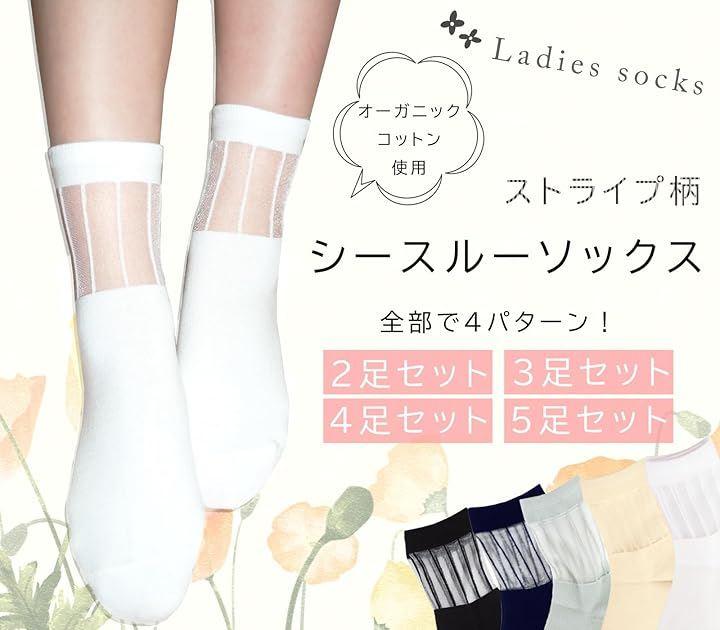 「特徴」 ・ch5355-B シースルー/透け感/クルー丈/ストライプ/オーガニックコットンお任せ 3足(3種)セット
