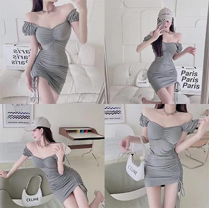 Women's Sexy Tight Mini Dress Sleeveless Shoulder Ribbon Open Chest