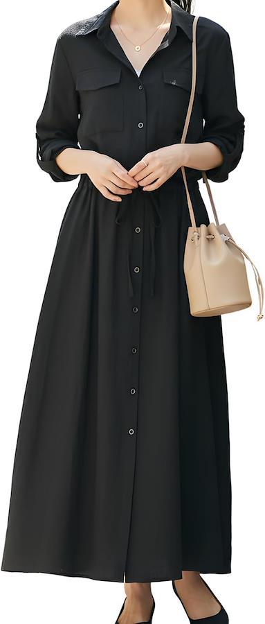 シンプルで洗練されたデザインが魅力のシャツワンピース。