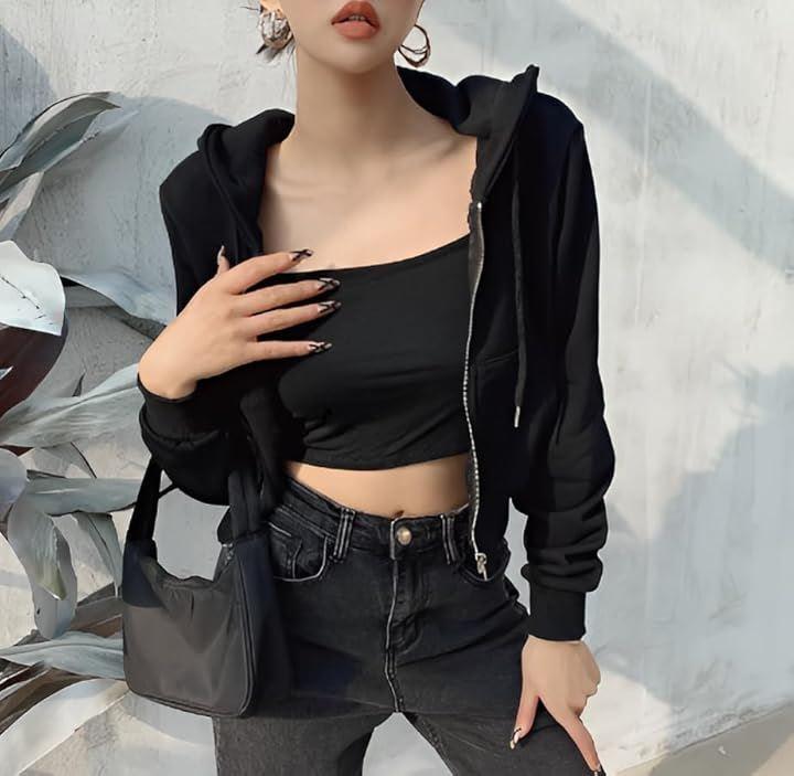 *「人気のへそ出しショート丈フード付きパーカーは、カジュアルでおしゃれなスタイルを叶える魅力的な必須アイテム。」ショート丈のデザインは、ラフなスタイリングが好きな方や韓国トレンド感を取り入れたい方にぴったりです。