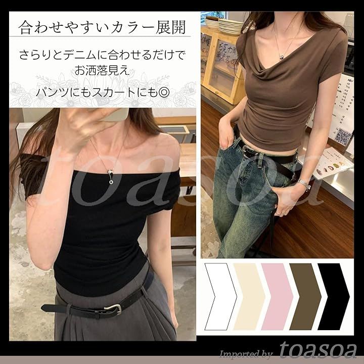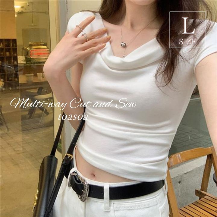 旬でセクシーな目を惹くドレープデザインが特徴のクロップド カットソー トップス。