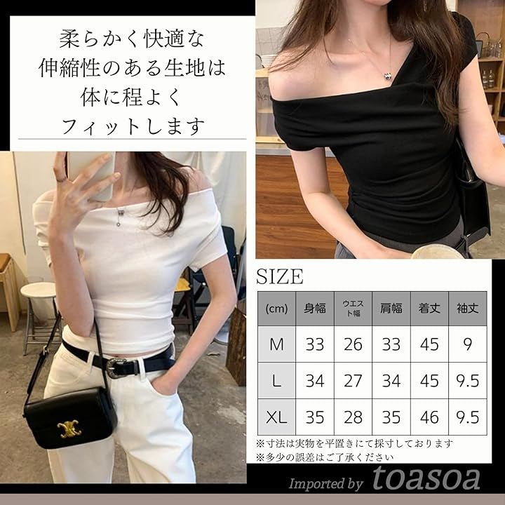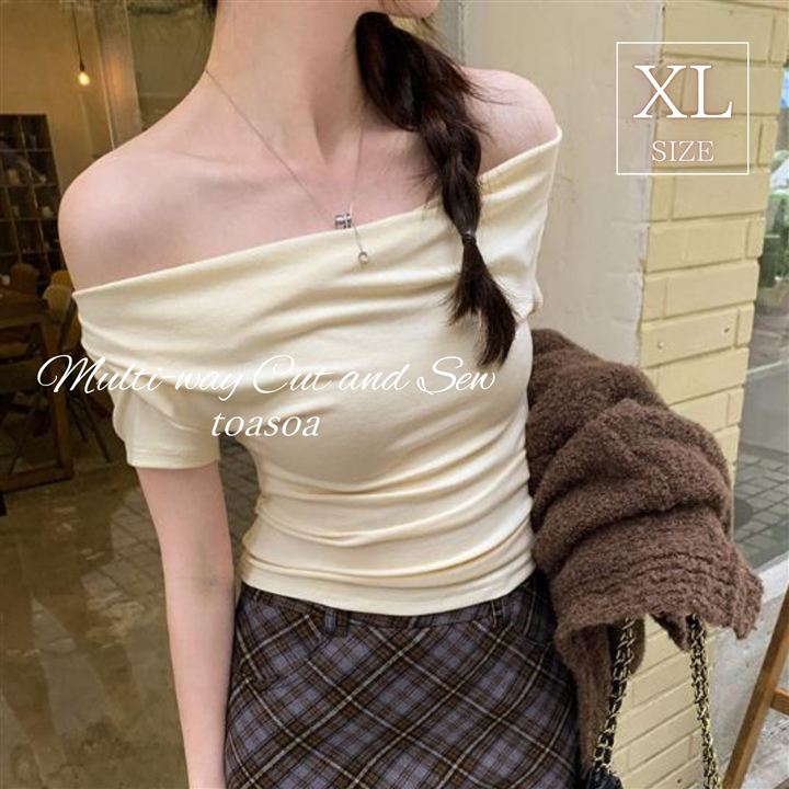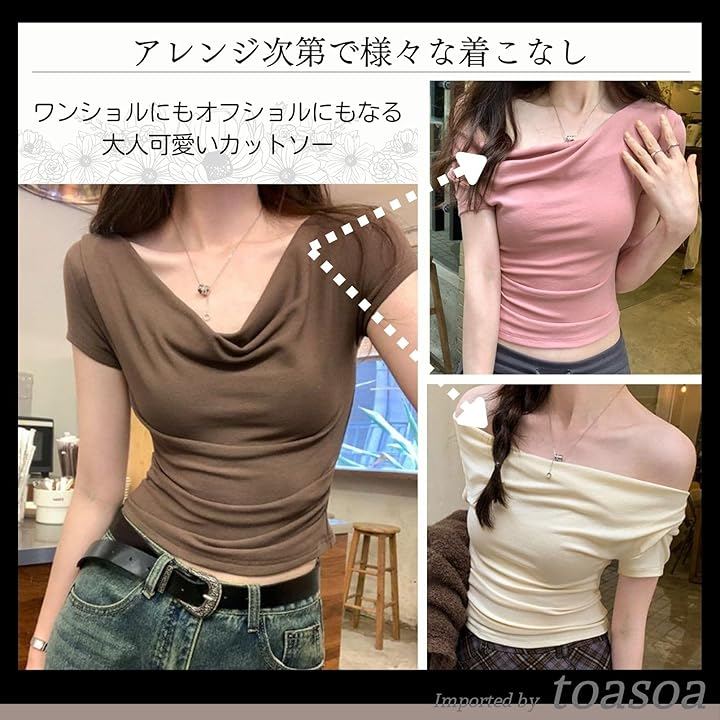 肩を落とすことでワンショルダーやオフショルダーとしても着られます。