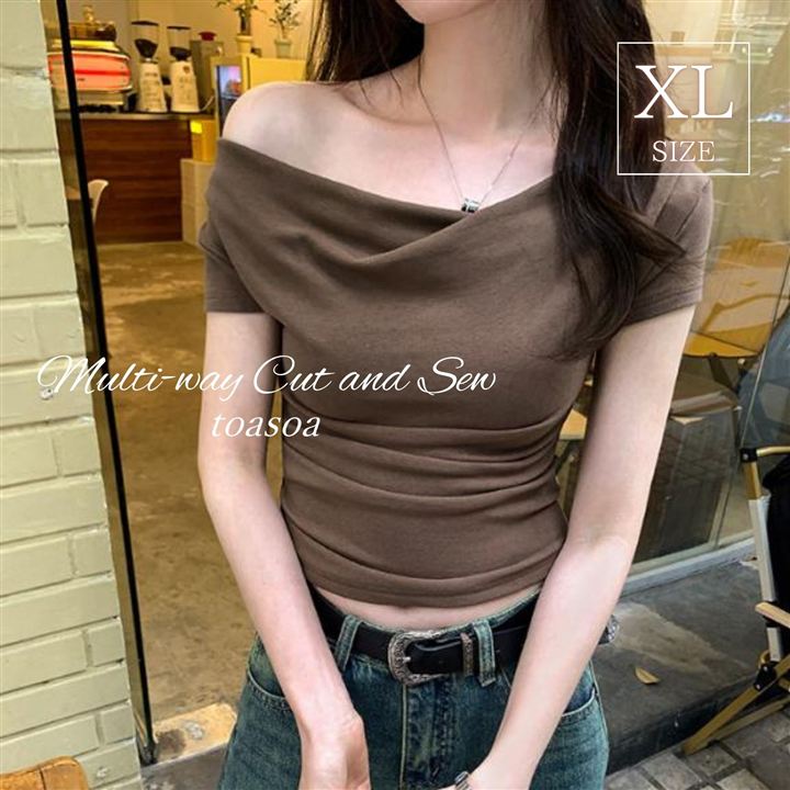 旬でセクシーな目を惹くドレープデザインが特徴のクロップド カットソー トップス。