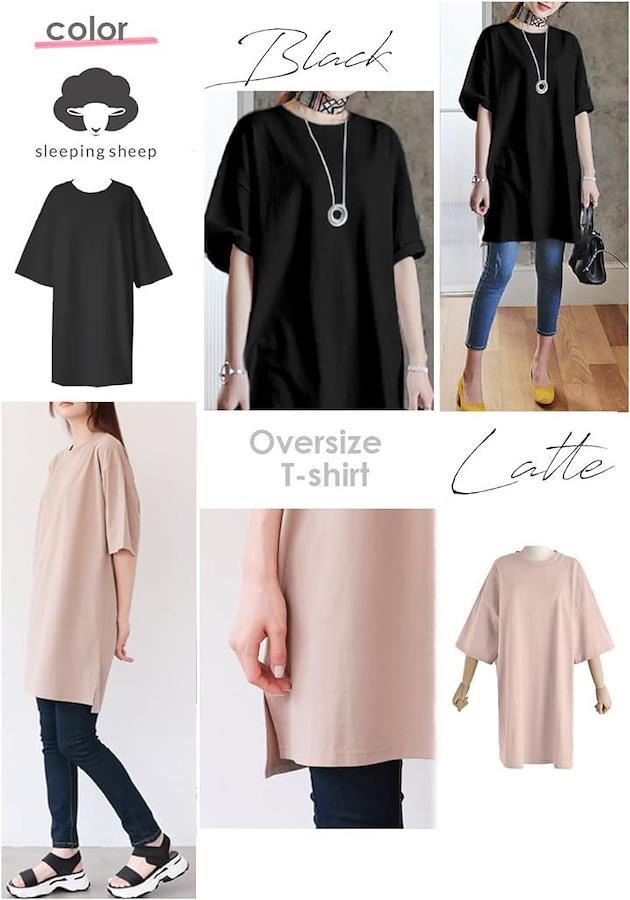 [サイズ]M・L・XL [寸法]M (日本サイズS-M) :バスト118cm 着丈85cm 袖丈23cm 肩幅58cm 袖口21cm アームホール23cm 裾幅116cm L (日本サイズM-L) :バスト124cm 着丈86cm 袖丈24cm 肩幅59cm 袖口22cm アームホール24cm 裾幅124cm XL(日本サイズXL-2XL):バスト132cm 着丈87cm 袖丈25cm 肩幅62cm 袖口23cm アームホール25cm 裾幅128cm [カラー]:ブラック・ホワイト・ピンク・ラテ・ブルーグレー [組成]コットン95% ポリウレタン5% [生産国]中国製