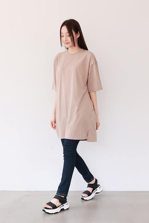 そんな柔らかなコットン素材の肌触りとストレッチのある優れた伸縮性も自慢で使い勝手のいいTシャツワンピです。