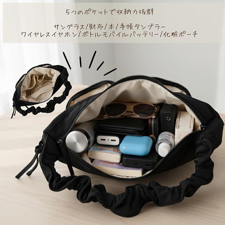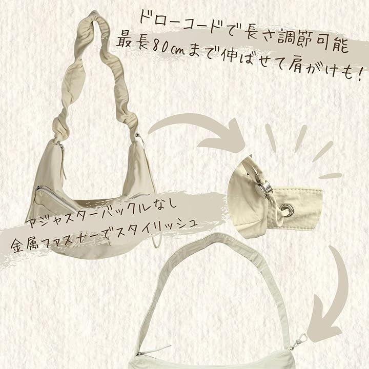 2wayで便利な5ポケット、約230グラムの超軽量ショルダーバッグ 持ち手部分のドローコード調節で、ショルダーバッグにもハンドバッグにもなる.