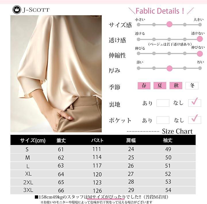 「サイズ」 着丈/バスト/肩幅/袖丈 S : 61/111/24/49 M : 62/114/25/50 L : 63/117/26/51 XL : 64/120/27/52 2XL : 65/123/28/53 3XL : 66/126/29/54