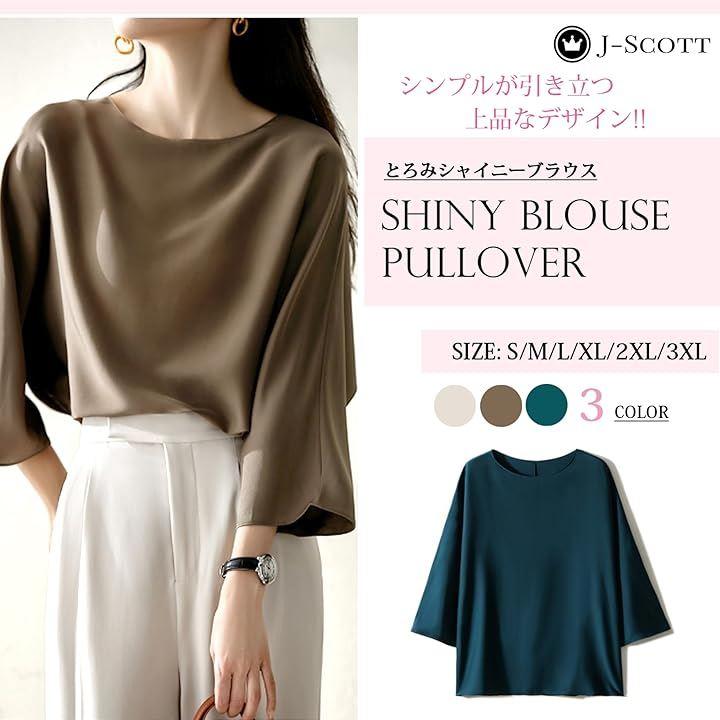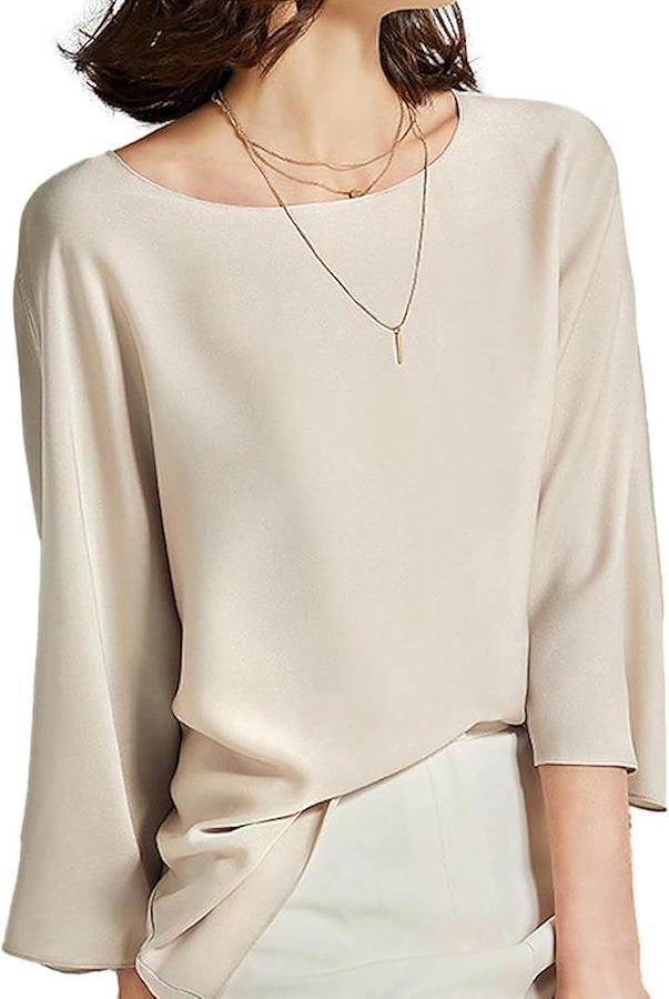 Women's silky blouse, 3/4 sleeves, round neck, silky touch, plain, pullover, elegant, satin-like, loose fit, tops for women, classy, elegant casual, dry, JS12