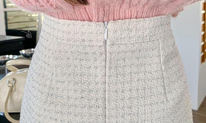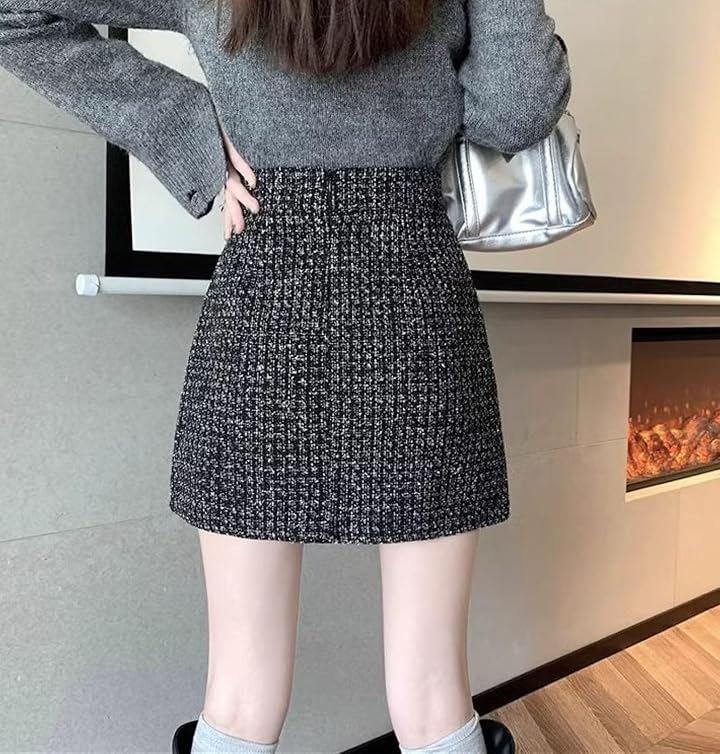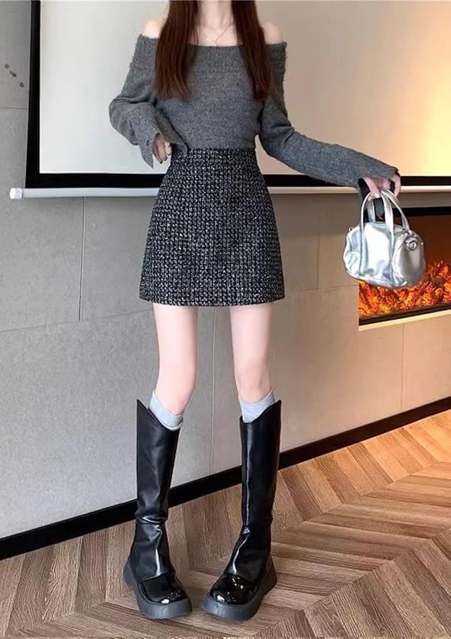 どんなコーデにもしっくり馴染む人気のツイード素材の台形ミニスカート。